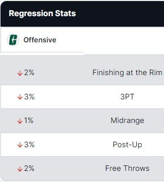 Charlotte/MTSU u126 : Best Bet of the night! Vegas is trying to attract some sucker money on the over here. They had a 125 number on this matchup earlier in the season, and the total ended on 149. They are tossing virtually the exact same number out there again today. You know what to do. Under is the play. I will jump into some analytics to back this up for you. Charlotte wants to play about as slow as you can possibly play in the shot clock era. They are 360th out of 363 teams in pace. They have a few outliers that are keeping them out of the cellar. MTSU won’t try to pull them out of this sluggish pace, as they are only 210th in pace. I am pretty confident that we see a low possession affair tonight. Also, these defenses rock. Charlotte has been a Top 80 team in defensive efficiency all season, and MTSU is trending that way after ranking 70th in their last three games (including OT win vs UAB). The Blue Raiders have one of the most athletic defenders in the country in Teafale Lenard Jr. He is averaging 1.6 steals and 1.9 blocks per game as a guard. These offenses are prime to struggle tonight. MTSU is a horrific jump shooting team, and as you can see below .. Charlotte is due for some major regression across the board on their shooting analytics per data from Shot Quality. We cruise under this total here.