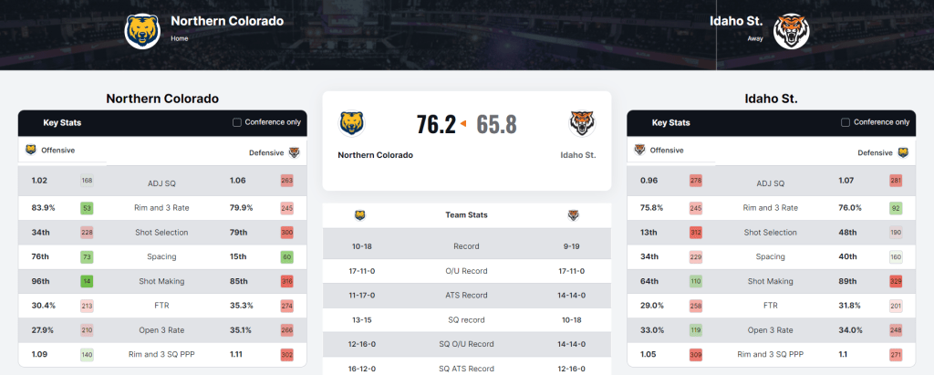 Score Prediction: Northern Colorado 77 – Idaho State 69