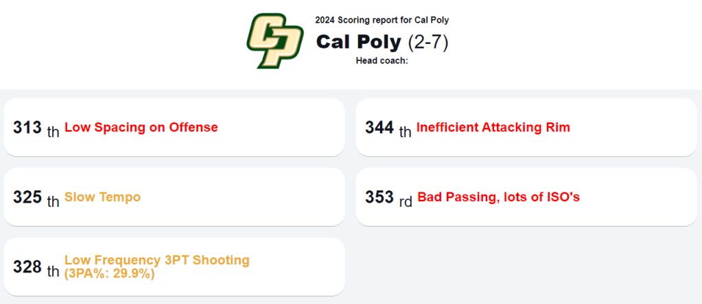 Cal Poly is building an ideal Shot Quality profile for going under totals. Look at how disgusting this is: