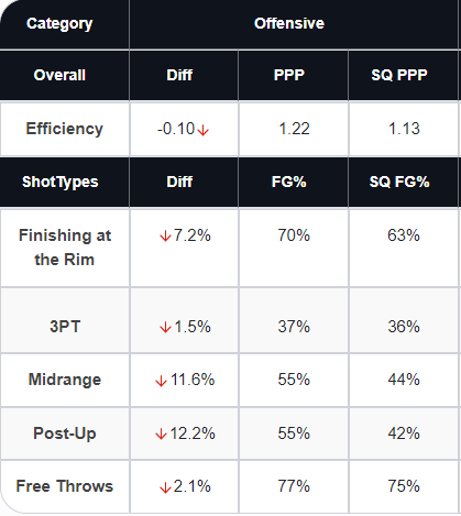 Duke is going to eviscerate Syracuse in the halfcourt tonight. The Blue Devils rank 50th in the country in Shot Quality PPP in the halfcourt. The Orange rank 297th in the country in SQ PPP allowed in the halfcourt. Also, Syracuse is due for defensive regression across the board. Here is their Shot Quality regression analysis: