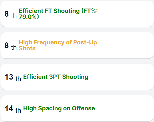 The post-up stat is intriguing after you take a deep dive into Arizona’s profile. Arizona is 282nd in the country in SQ PPP allowed in post-up scenarios. This will be a juicy way for Clemson to attack the Wildcat defense with Hall, Clark, and Schieffelin. DaRon Holmes showed us some of these cracks in the post-up defense as well. Arizona is also 190th in the country in Open 3 rate allowed on defense. Clemson’s profile of being the 13th most efficient 3PT shooting team + the 14th best spacing team will lead to some huge momentum threes in this matchup.