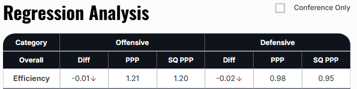 These defenses rock. Oregon is at 1.03 SQ PPP allowed & Stanford is at 1.00. This is very important with a pace that I believe will be slower than the market suggests. Dana Altman and Kyle Smith are very familiar with each other from their Pac-12 battles over the years. This will be an absolute chess match with some zones thrown in here and there. Oregon is 152nd in adjusted tempo per KenPom, but I think this game plays much closer to where Stanford ranks in that category (222nd).