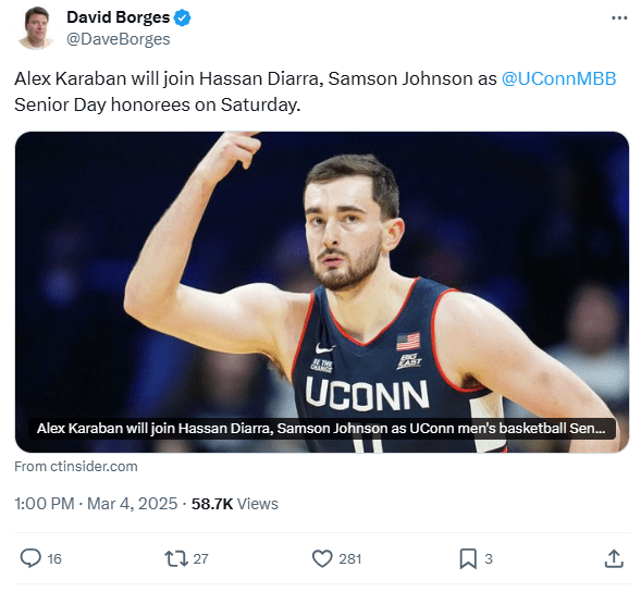 This is definitely a spot angle. We will likely see one of the better versions of UConn that we have all year long in a Senior Day atmosphere against Hurley’s alma mater.
