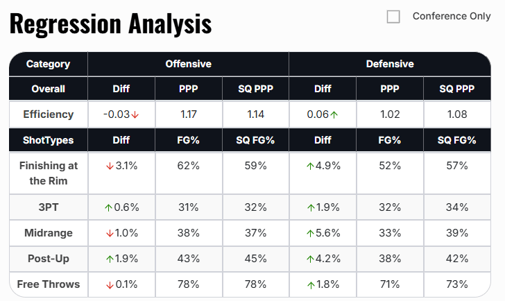 However, analytics on our our side as well. We took 18 here and KenPom actually has this as a 17 point game on it’s own analytical merit without any other factors at play. The Seton Hall offense continues to be one of the worst watches in the game. The Pirates are now 359th in the country in ShotQuality PPP in the halfcourt. UConn is up to 22nd in defending in the halfcourt. That is going to be a death sentence in what will be an inferno atmosphere today. The ShotQuality regression model also shows that this is Seton Hall’s PPP true form based on the shots they are getting. This one is going to get ugly. Quick. I feel confident laying it here.